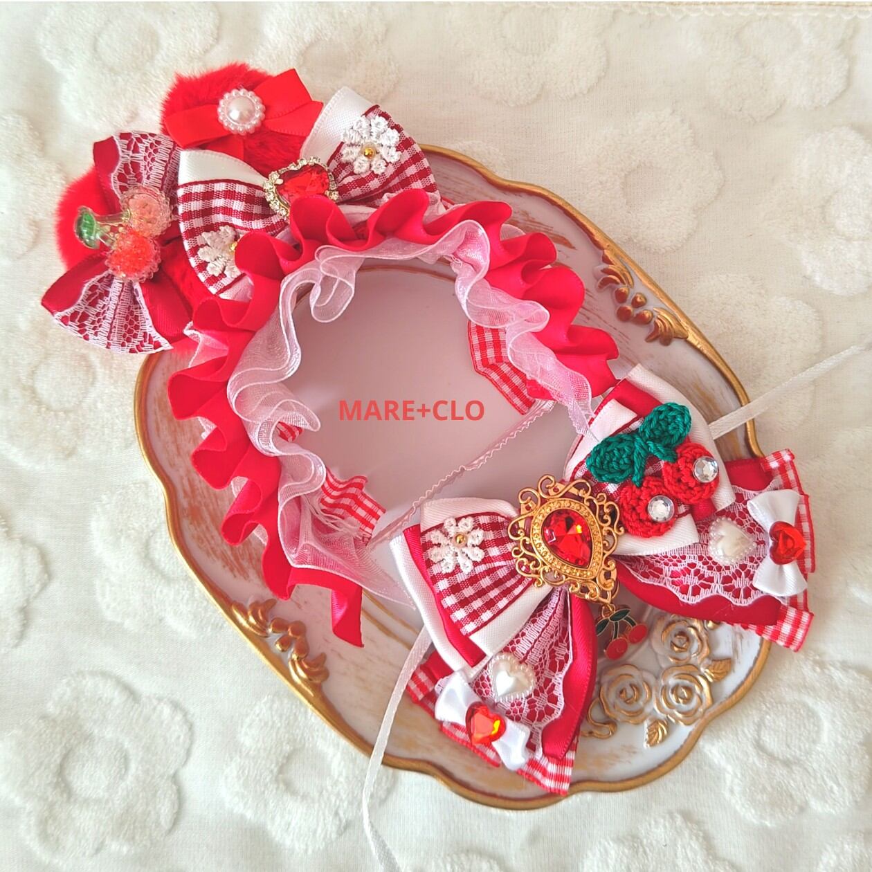 31 ヘッドドレス リボン 11〜13cm さくらんぼ うさぎ ぬいぐるみ用 ぬい服