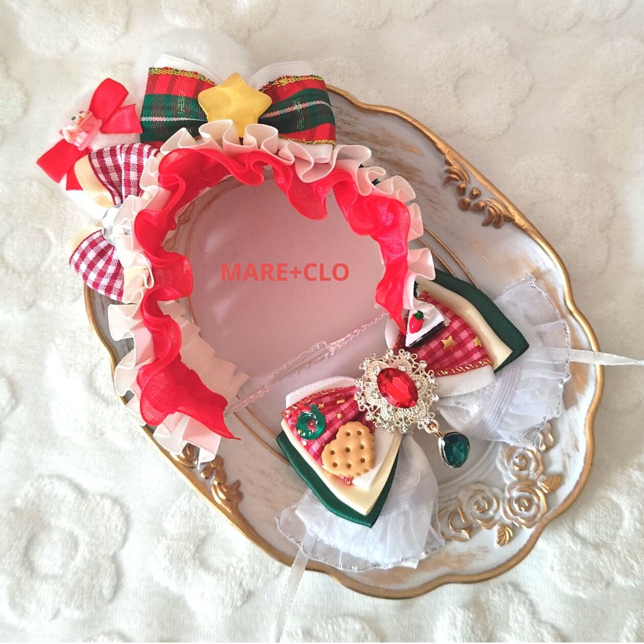 34 ヘッドドレス リボン 11〜13cm クリスマス うさぎ ぬいぐるみ用 ぬい服