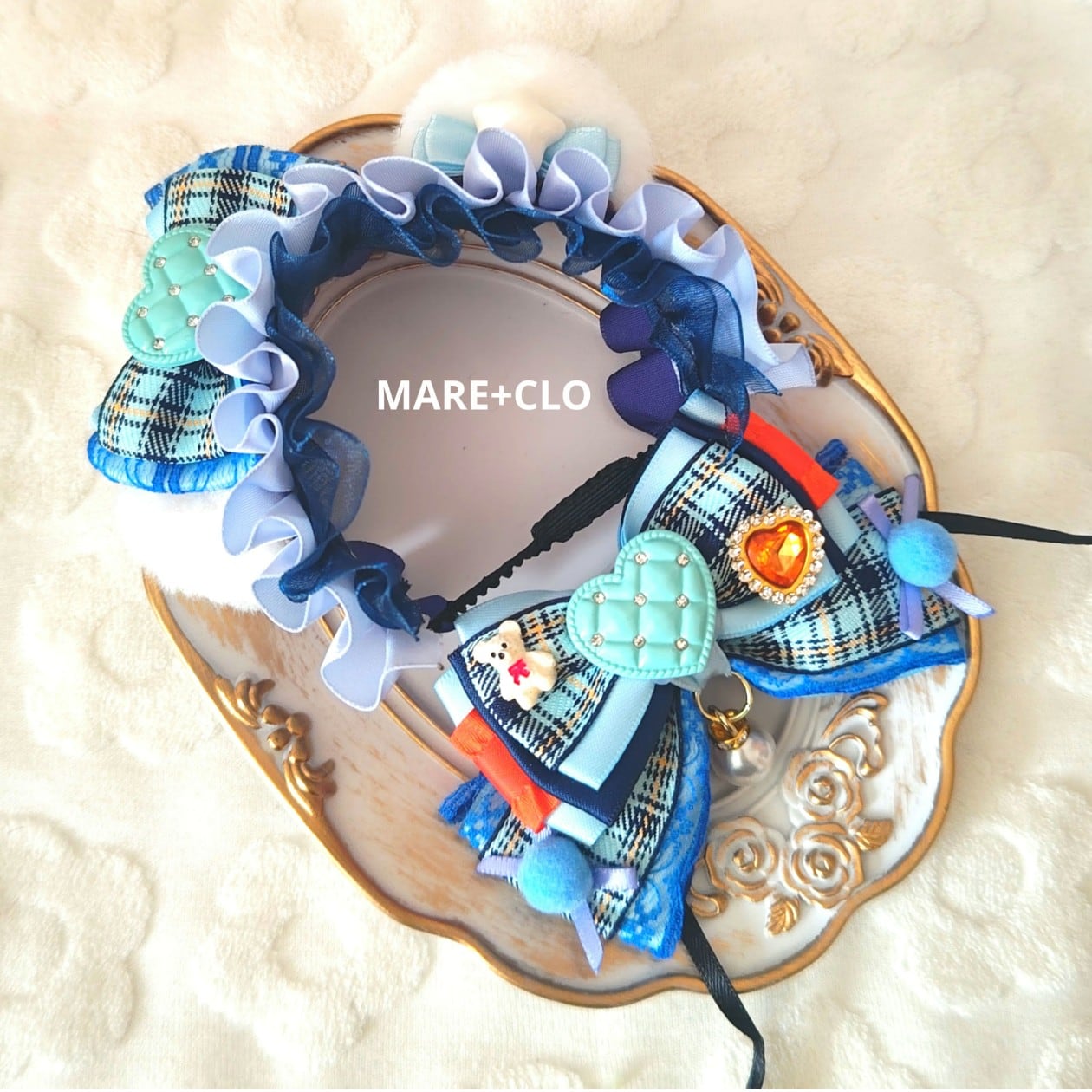 ヘッドドレスの後ろはゴム、胸元のリボンは後ろで結ぶようになっております。