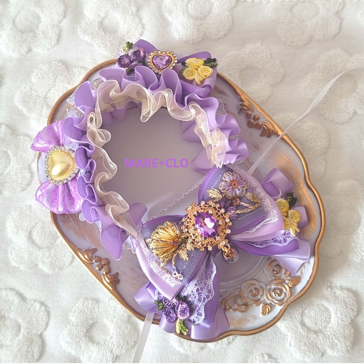 ヘッドドレスの後ろはゴム、胸元のリボンは後ろで結ぶようになっております。