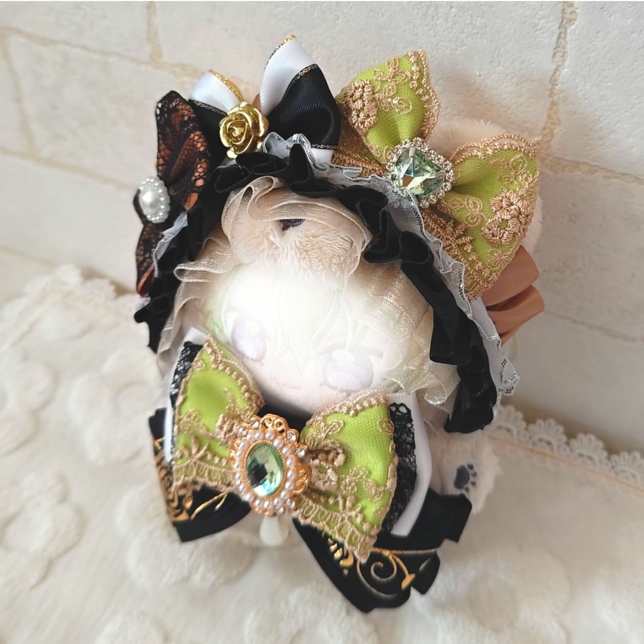 ヘッドドレスの後ろはゴム、胸元のリボンは後ろで結ぶようになっております。