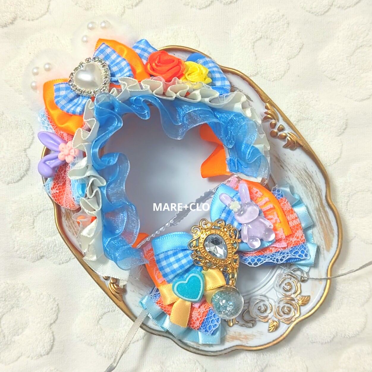 ヘッドドレスの後ろはゴム、胸元のリボンは後ろで結ぶようになっております。